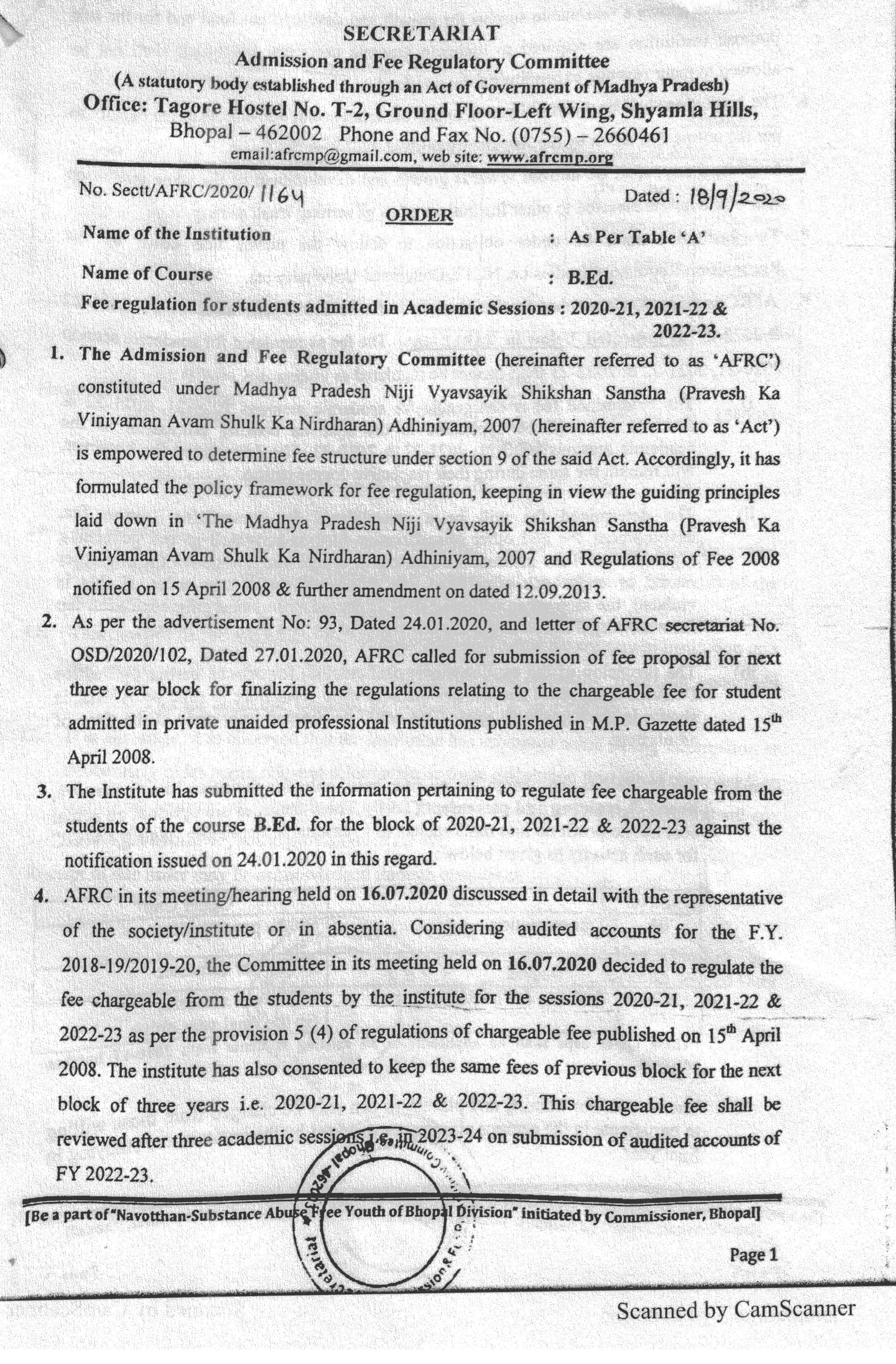 Fees Order